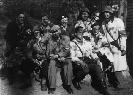 Et gruppebillede af 3.deling - 1.gruppe: Yderst til venstre Lau Lauritzen. I øverste række i midten med baret og ternet skjorte ASA's regissør Knud Valdemar Jønsson. Yderst til højre Poul Reichhardt. Ved siden af Reichhardt med cigaret og hat er det filmfotografen Jørgen Uhlig. Er der nogen der kender navnene på nogen af de andre? Tænk om en af dem stadig er i live og vil fortælle om den dramatiske tid: