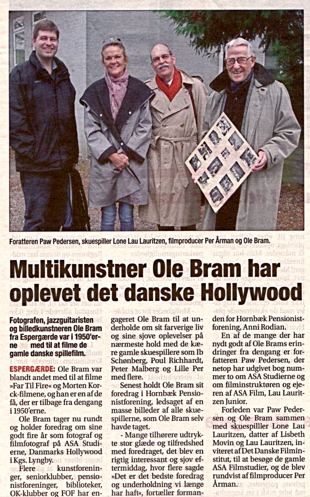 Nu kan kunstforeninger - seniorklubber, unge, ældre og andre interesserede få den lokale multikunstner Ole Bram ud og fortælle om sit farverige liv med bl.a. årene på ASA Filmstudierne i Lyngby med de populære Far Til Fire- og Morten Korch-film.