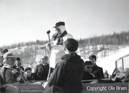 Ole Bram: "En fotografassistent kan bruges til meget. På dette billede er jeg klædt ud som Agnes Rehni - Fru Sejersen! Vi skulle have Agnes Rehni til at løbe på en glidebane i "Far til fire i byen"; men hun turde ikke. Så tilbød jeg mig. Det var min første stand in opgave - og det er altså mig man ser i filmen.":