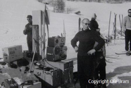 ASA's tonemester Bent Høyer med det "transportable" toneudstyr under indspilningerne i Norge til "Far til fire i sneen" (1954):