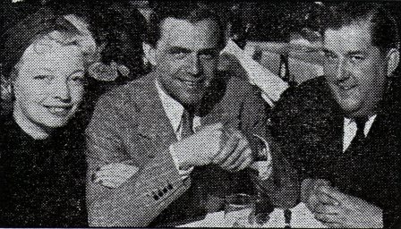 Billed-Bladet: "En gang imellem får Børge Müller udlængsler og vil til hovedstaden, men da filmen skal være færdig den 15. september, tillader Lau Lauritzen ingen udflugter. På billedet ser man, hvordan Lau Lauritzen klarer en sådan situation."