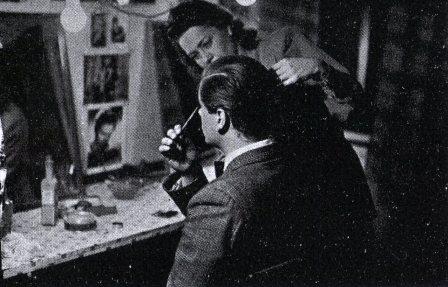 Fru Eva Melchiorsen, script-girl på ASA og Alice O'Fredericks sekretær. Her sammen med Ole Neumann under indspilningerne til "Fløjtespilleren" (1953):